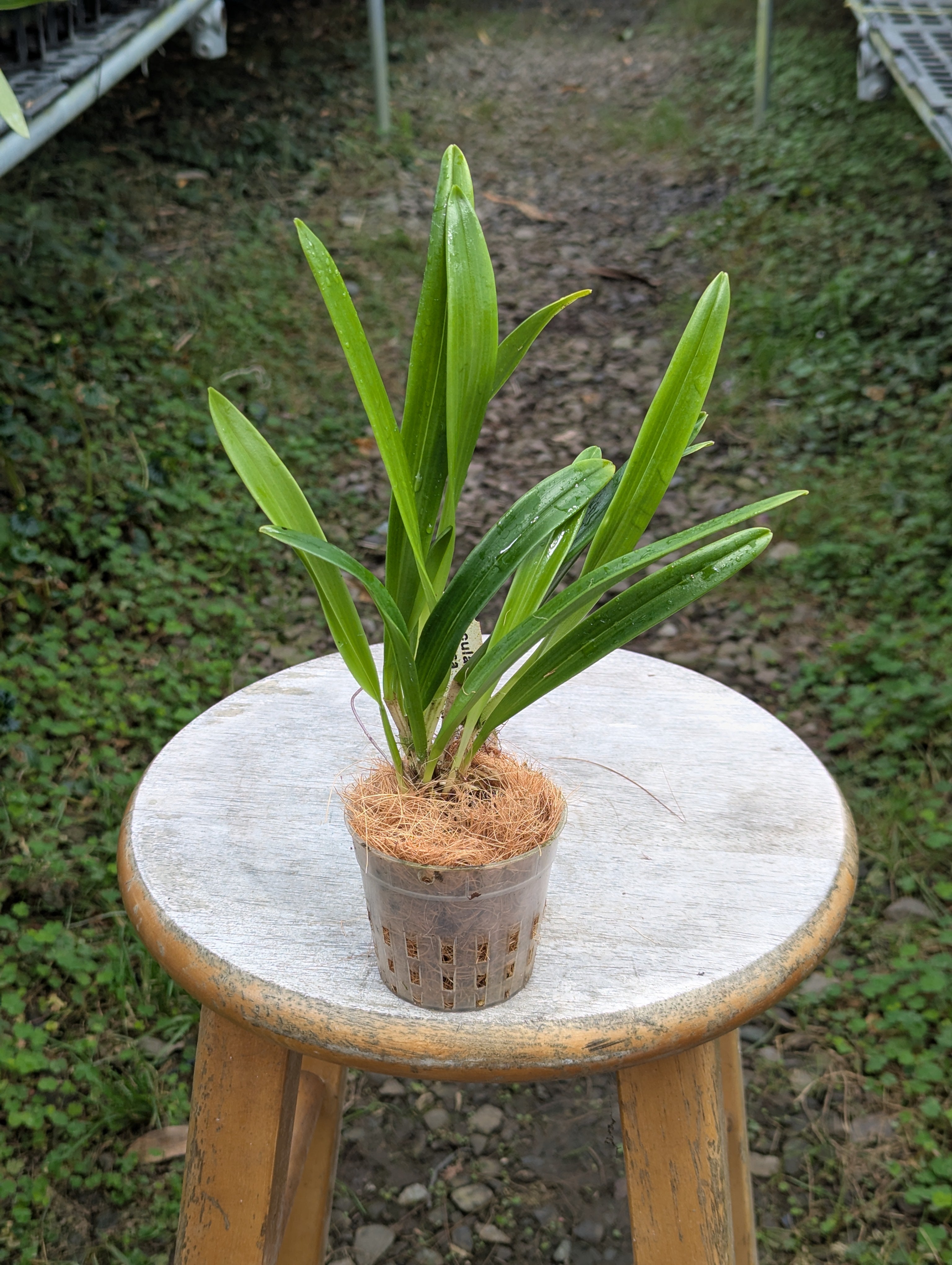 This species produces very small (about the size of a dime) flowers that truly have a monkey face! Flowers late winter for us and a plant the size of the one in this listing can produce 20-40 flower spikes all at once. Not only that, each flower spike will produce 2-5 flowers in succession over a period of a couple of months. The short flower spikes emerge around the margin of the plant and the flowers face down. When seen from below it looks like a pack of mini monkeys staring down at you! Best if hung up in a basket but this is one of the few Dracula species that can be grown in a pot on a table.