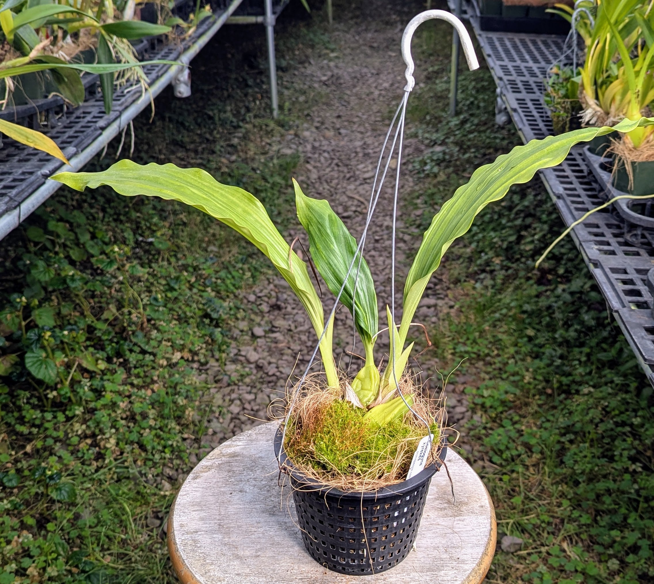 This is a beautiful plant with beautiful flowers! The flowers are formed on a pendant spike so it's best to plant this species in a hanging basket or pot to fully enjoy the flowers. The large, long-lasting flowers are approx 2.5-3" across. Petals are a very light rosy pink and the lip is brick red/cinnamon and the flowers are sweetly fragrant. Each spike produces 3-6 flowers successively. Each new flower blooms just as its predecessor is wilting. More mature plants will produce many flower spikes at the same time. It's a non-stop show for months!