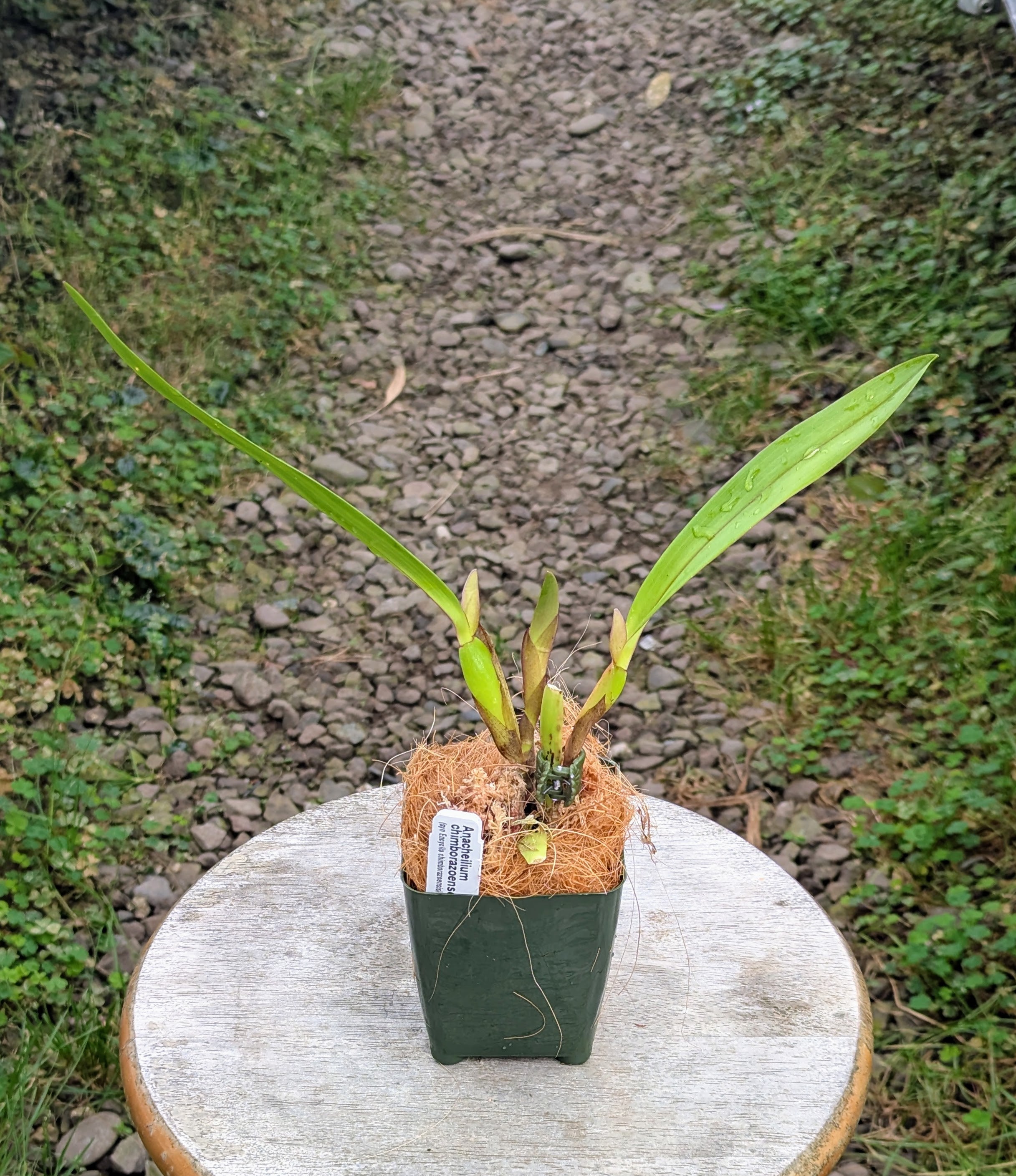 Care: Intermediate to warm, bright indirect light, regular watering, and light feeding throughout the year with a drier rest period in Winter.