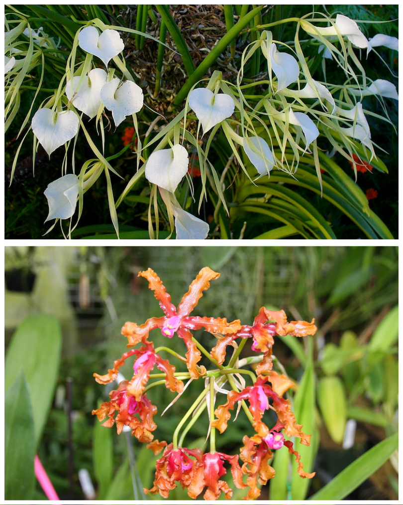 A new in-house hybrid! Parent plants are pictured. Our first time with this cross. Looking forward to seeing the hybrid flowers--It's an adventure!