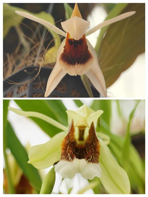 With this cross we are looking mainly for hybrid vigor. The offspring will look very similar to both parents with some slight variations in color. Parent flowers are 3-4" inches across, flower sequentially (2-5 flowers/spike), and are pendant (adult plants do best in hanging baskets).